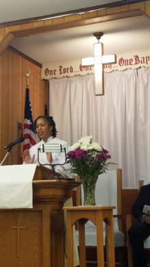 Diaconate Chair, Deacon Bellamy Shivers, gave the Charge to the Deacon to his wife, Deacon Louise, with Rev. Jackson doing the Prayer of Ordination. Deacon Bellamy and Rev. Carla participated in the Laying On of Hands with Pastor. During that Charge, Deacon Bellamy laid out all of the duties, responsibilities and expectations of a Deacon at FBC. “A Deacon is to be a Servant of God, humble and waiting on the people of God; a Flagbearer, always defending the faith; an Evangelist, able to explain the Word of God; and a Standard of the Faith, living a life that is pleasing to God.” He continued on touching on the history, importance and spirituality of the position and finished with the official, “Deacon Louise Shivers, welcome to the Diaconate Ministry of First Baptist Church.”